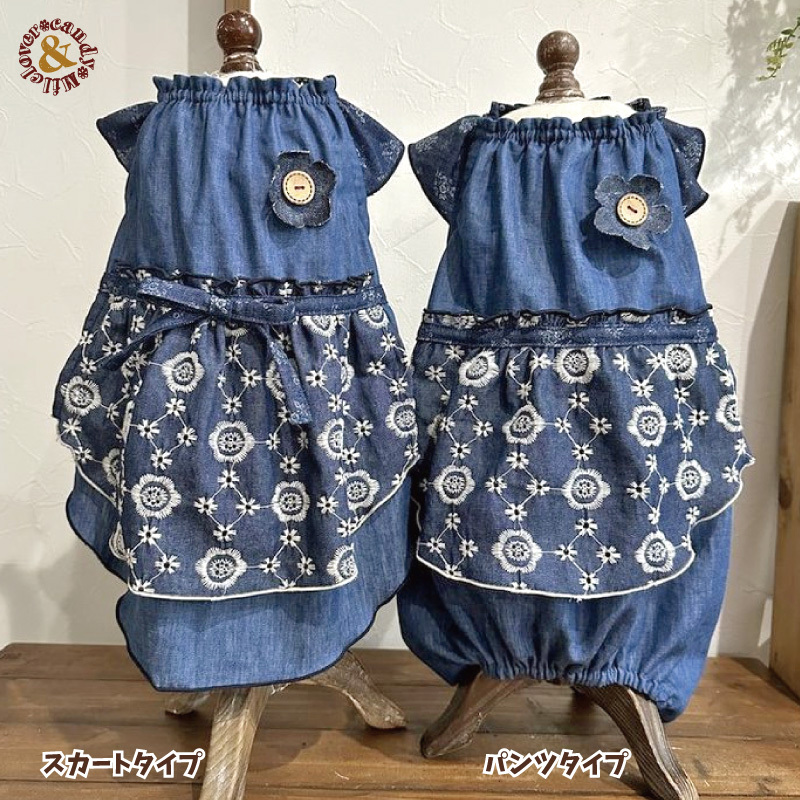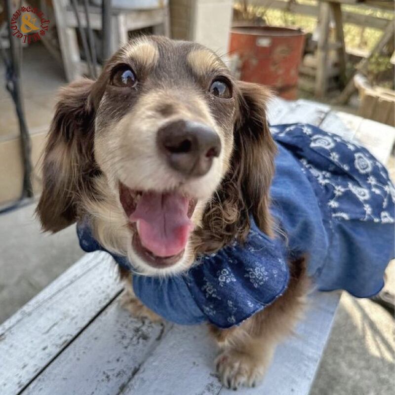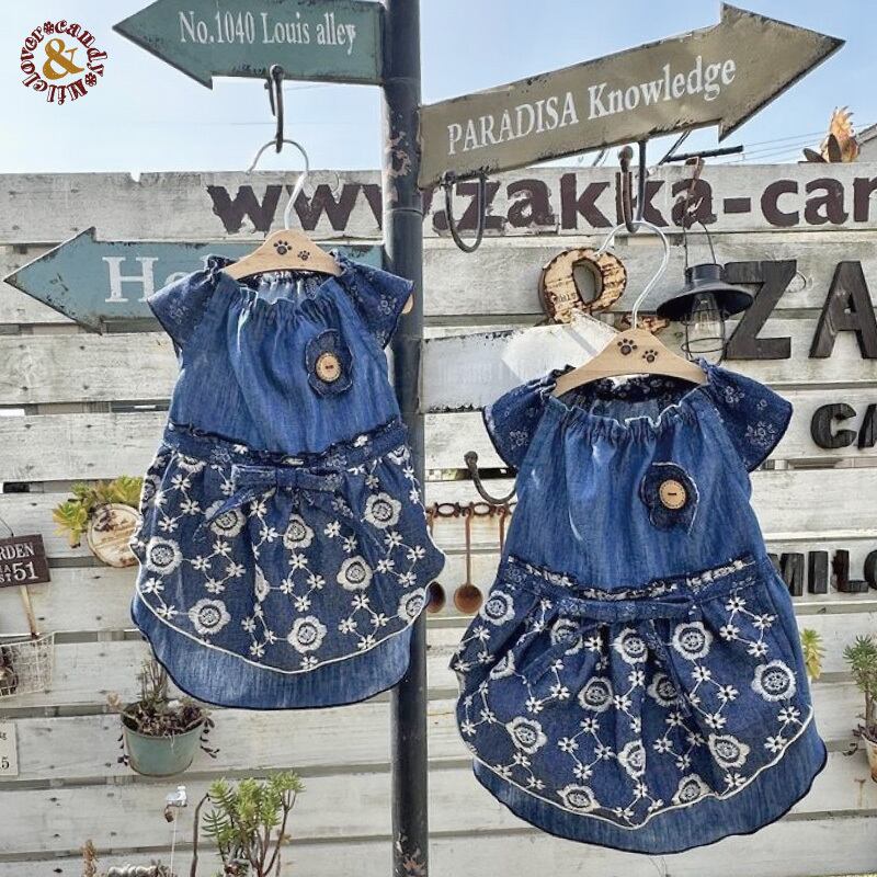 ダンガリーのような薄手の軽いデニム生地なので、わんちゃんの負担もなくオールシーズン着用いただけると思います♪