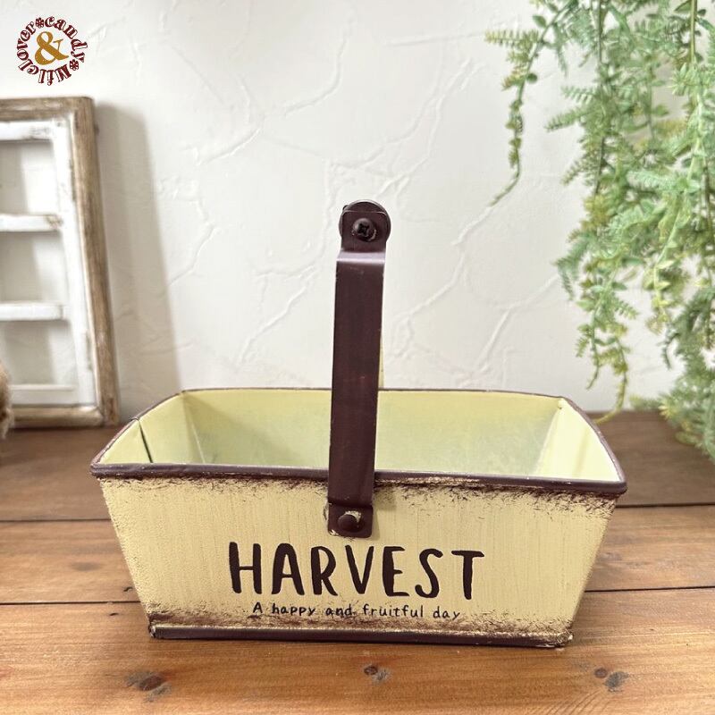 長い間使われていたかのようなアンティーク仕上げのかわいい小さなブリキのバスケットです。