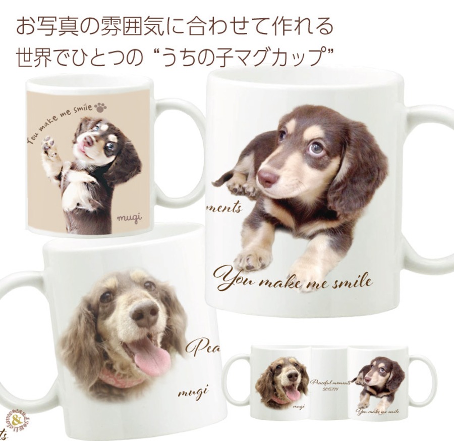 大切なペットのお写真から作る、オーダーメイドのマグカップです。スマホで撮ったスナップ写真や、昔の少し粗い写真でも、写真の状態に合わせて仕上げます。