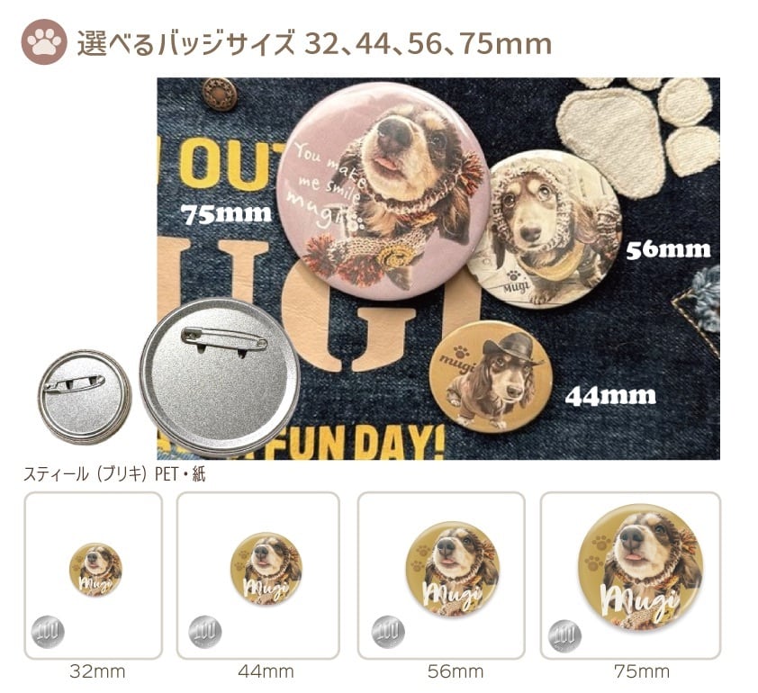 選べるデザイン 写真で作る うちの子バッジ3個セット