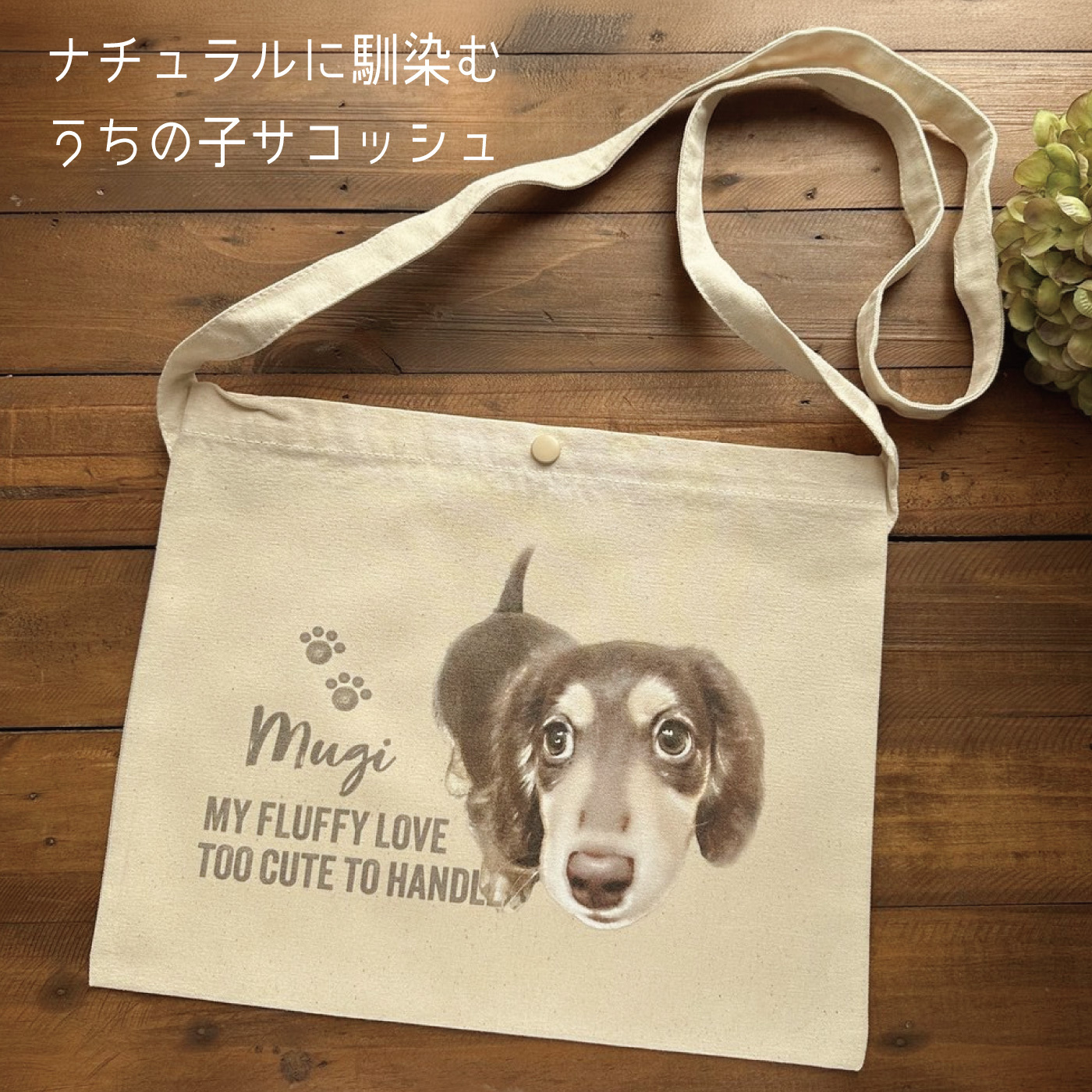 送料無料|写真から作る うちの子キャンバスサコッシュ|名入れ無料・ナチュラル素材