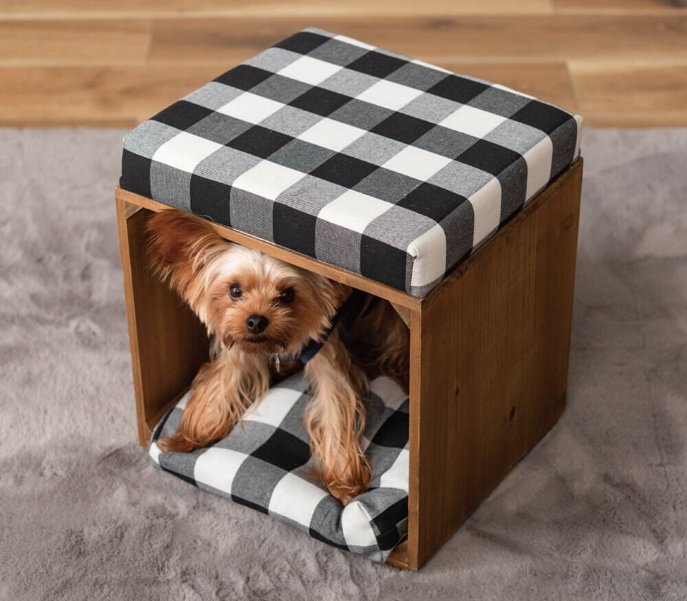 【検索キーワード】スツール ペット ペットスツール クッション 天然木 かわいい おしゃれ 小型犬 猫 ネコ いぬ チェック シンプル コットン